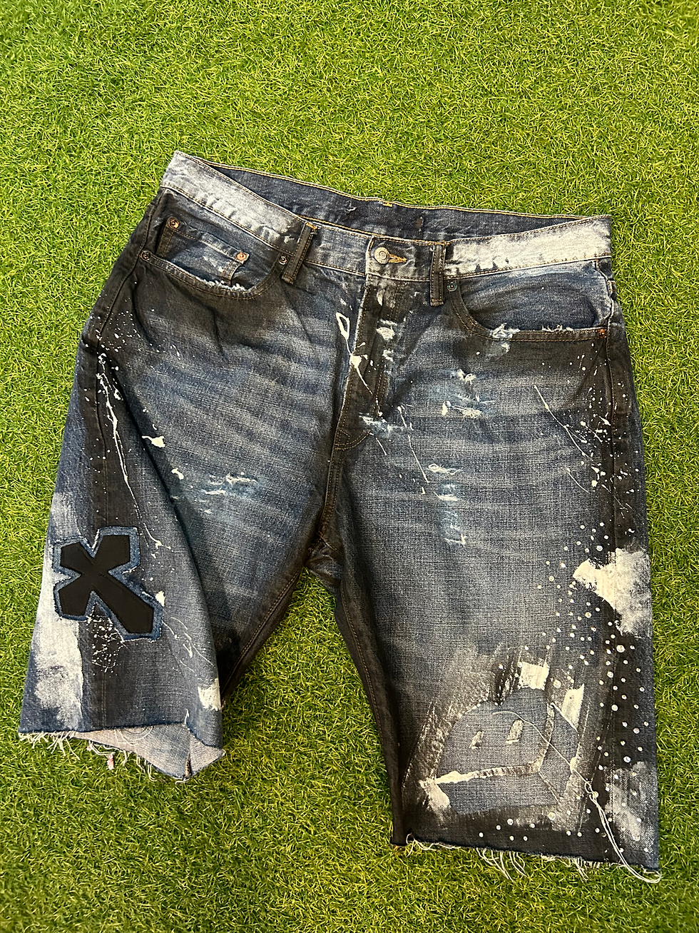 Brokelife custom 1 of 1 cut-off splash paint/ bedazzle short set