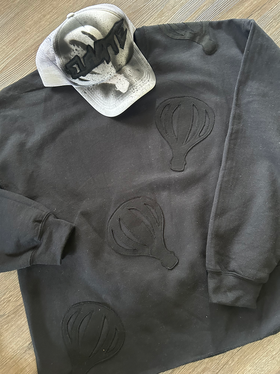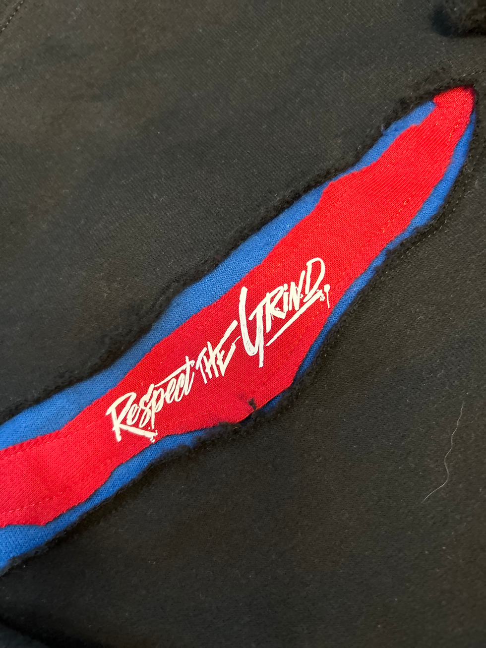 STVSH x RICH IN SPIRIT custom cut off bedazzled/jean hoodie