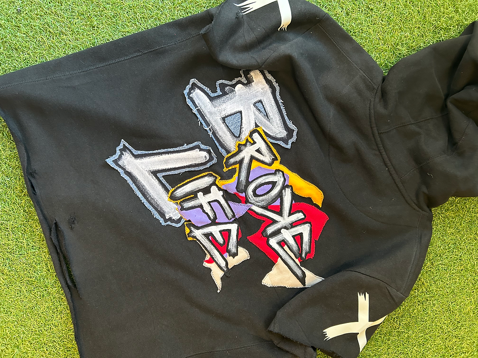 Custom brokelife reversed upside pocket oversized cropped graffiti hoodie